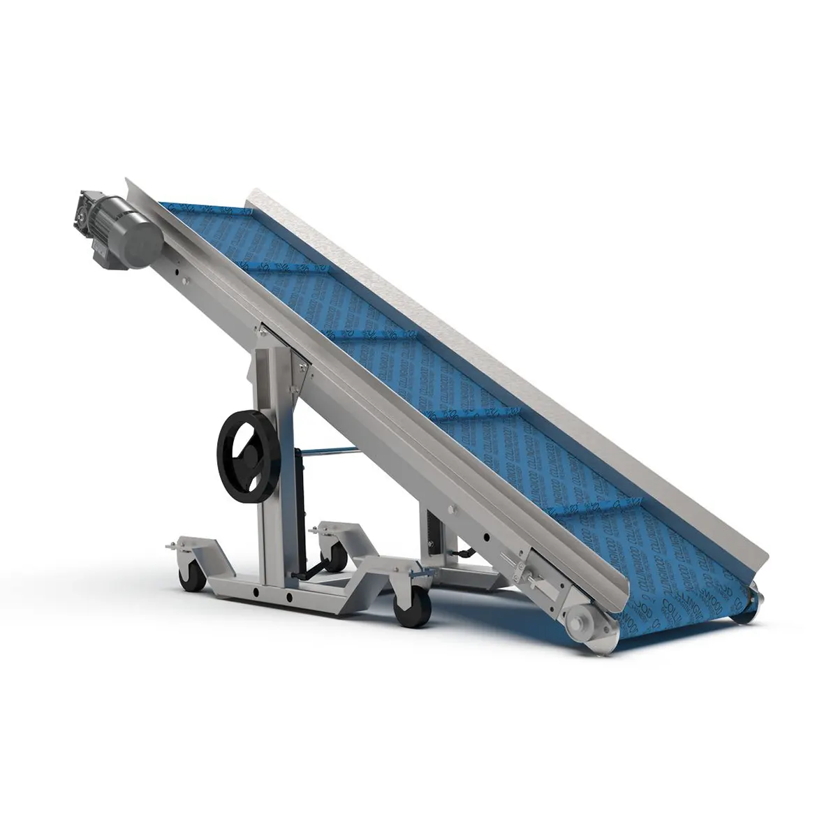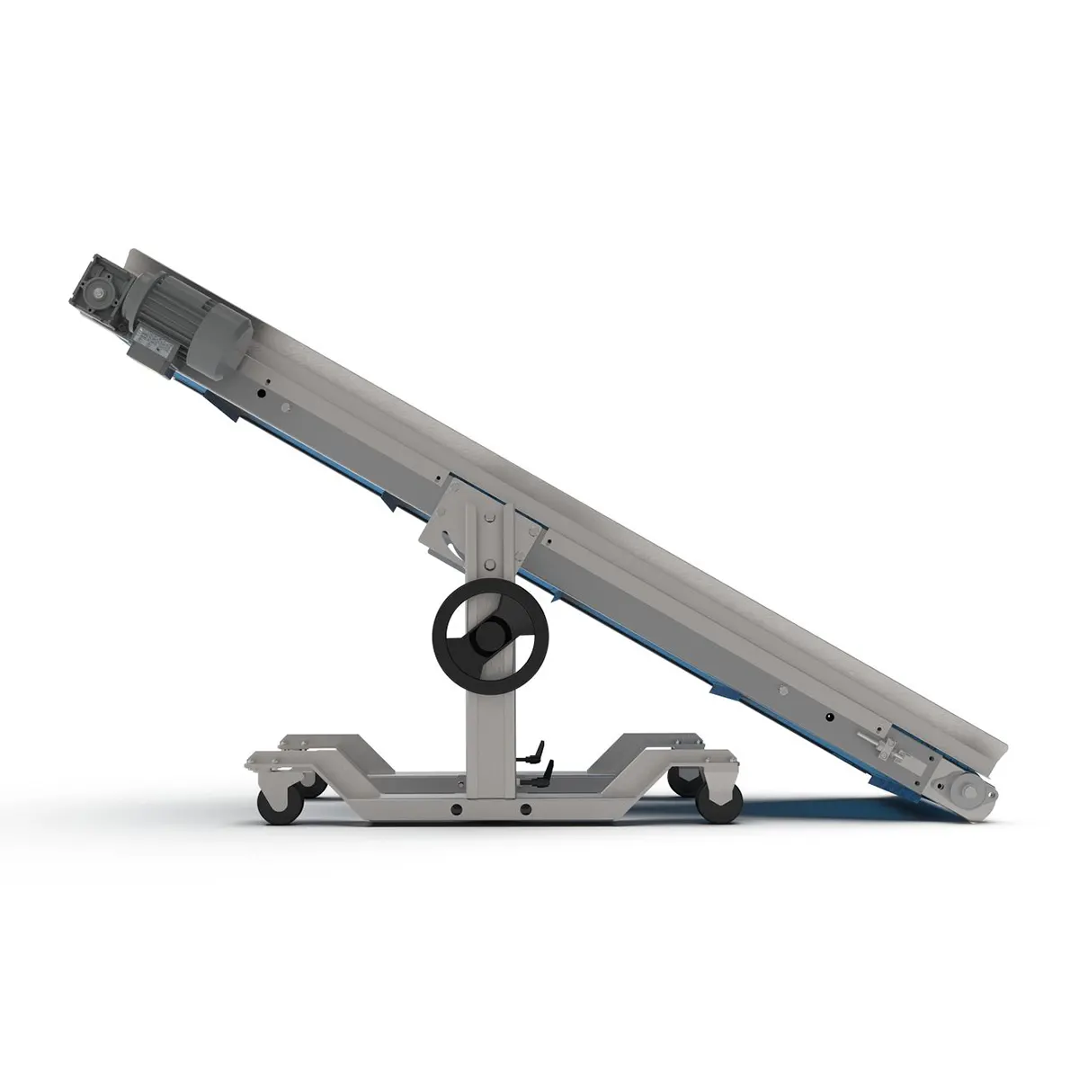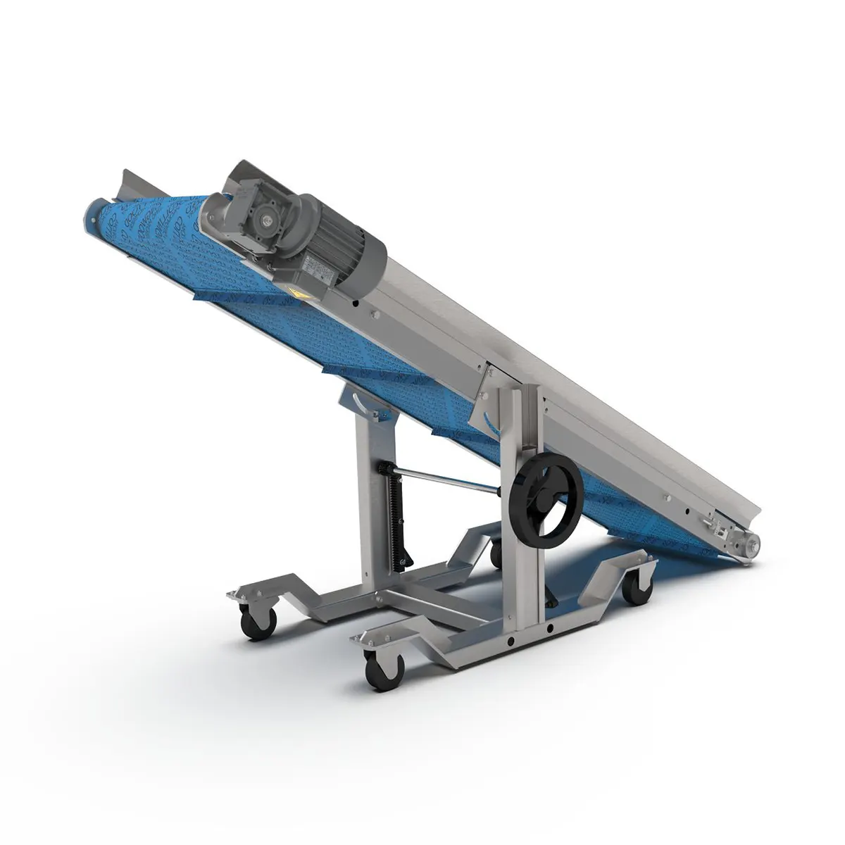 Las bandas transportadoras, recogen las bolsas ya confeccionadas de la envasadora y con una longitud de 1’5 metros las transporta a una altura de trabajo de 0’9 metros.
