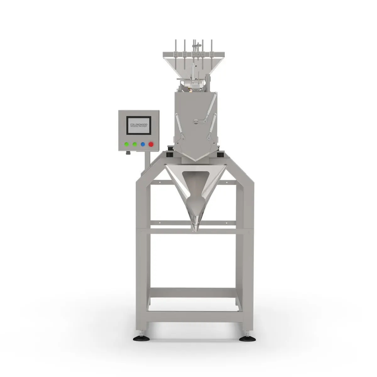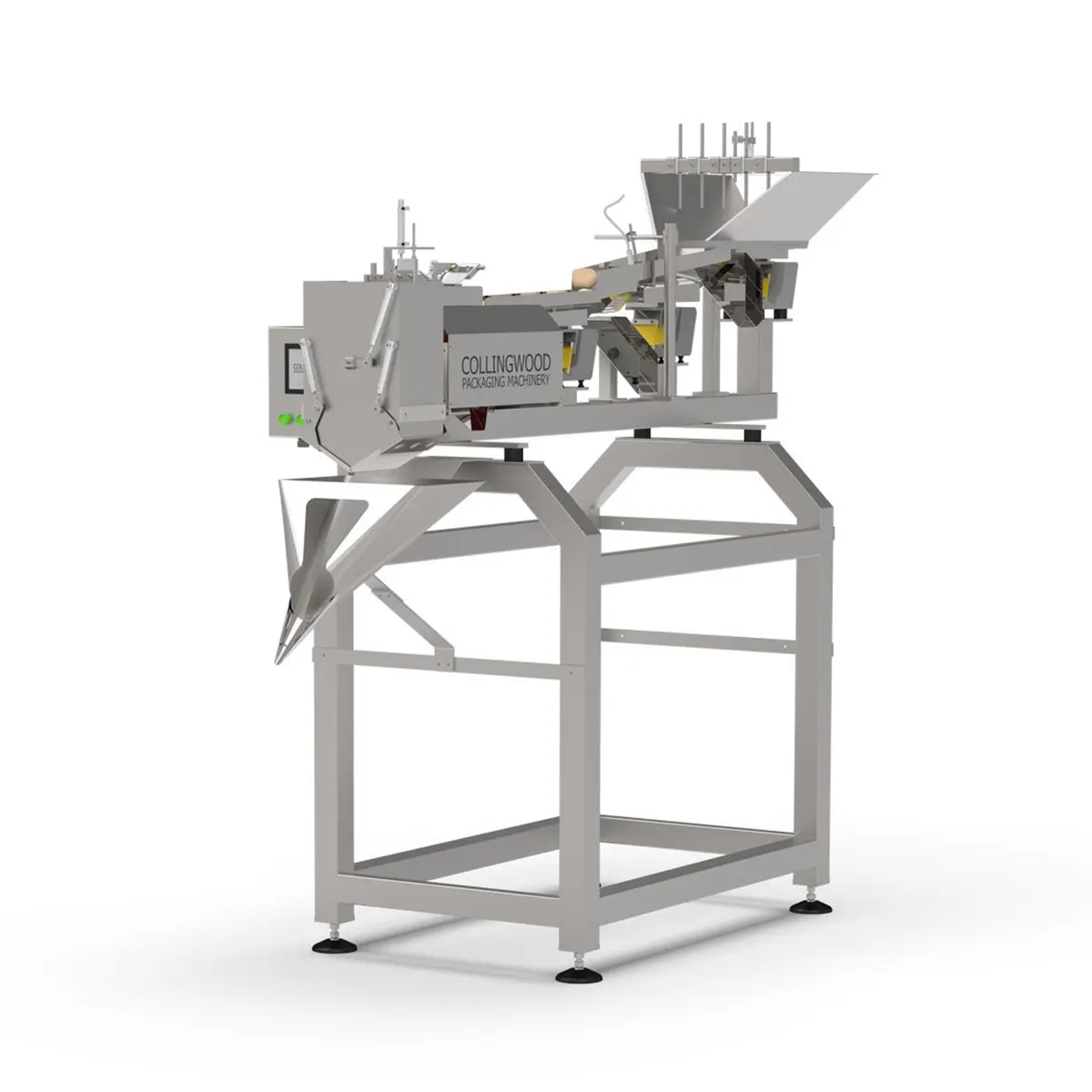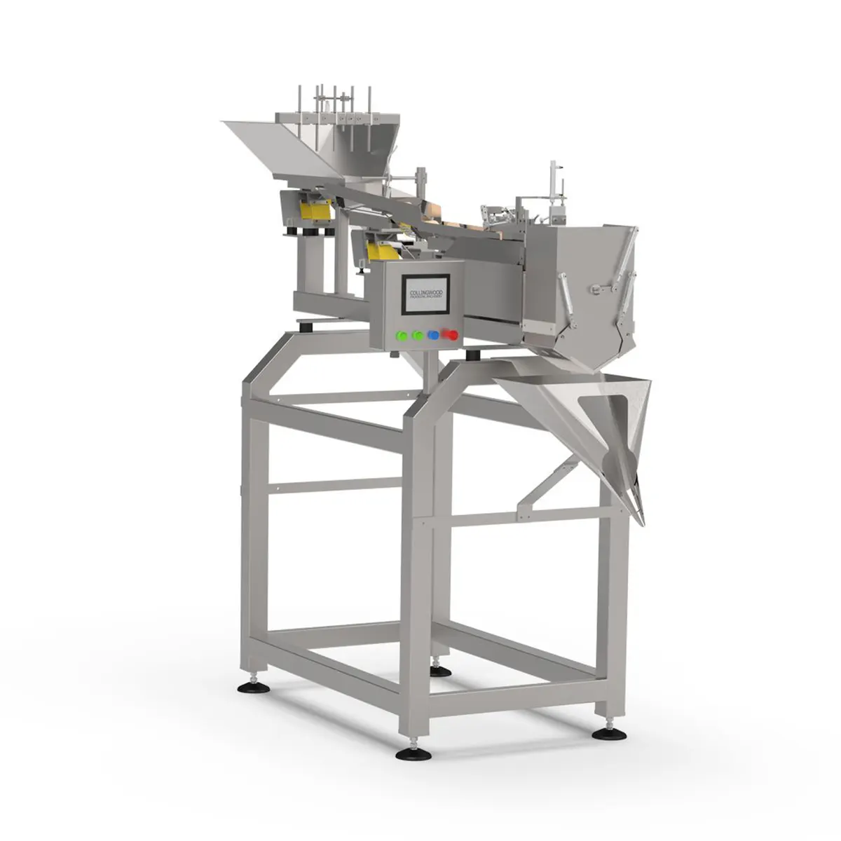 El hecho de disponer de las canales y la cinta transportadora citadas anteriormente permite el acondicionamiento del producto en una hilera, separando las piezas de manera que se facilite la lectura y conteo.